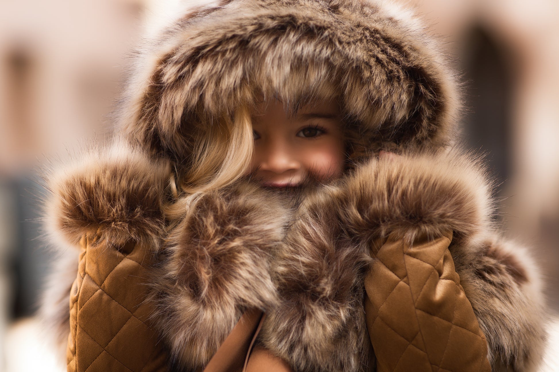 Luxury girl's coat in a rich caramel tone, crafted from premium-quality velvet-quilted fabric. Its elegant design features a majestic layer of long faux fur and a delicate decorative bow integrated into the adjustable belt, evoking the charm of classic fashion. An exclusive piece that combines style, warmth, and distinction — perfect for special occasions. (The fur layer is detachable and included.)